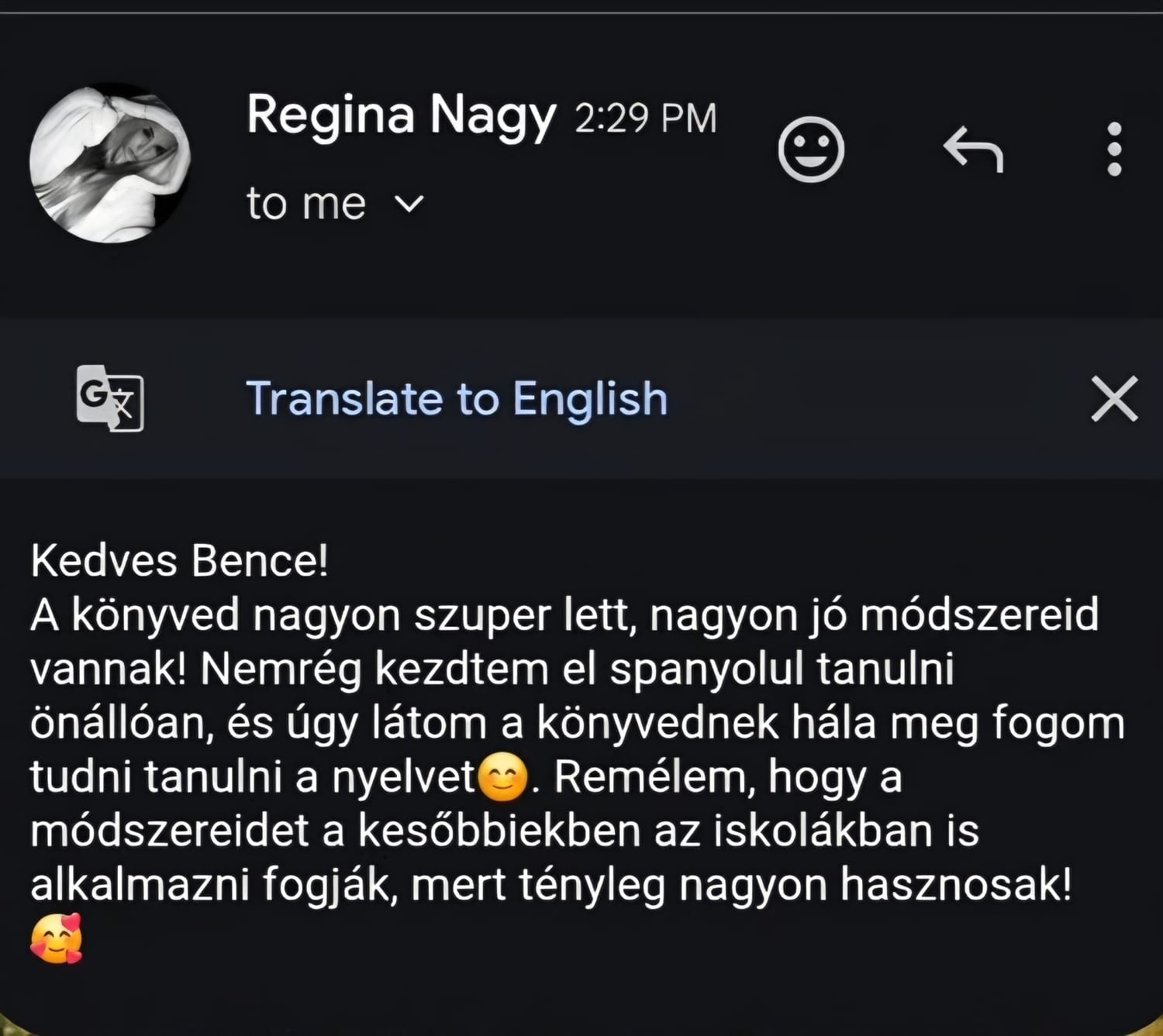 Nem bizony! 😄 A könyvben több százezer forint értékű tudás található: módszerek, ingyenes források, privát videóhoz vezető link, amiben részletesen elmagyarázom a saját nyelvtanulási módszeremet. Konkrétan minden benne van, amire csak szükséged lehet egy idegen nyelv elsajátításához. Ez Magyarország egyetlen ilyen nyelvtanulási könyve!